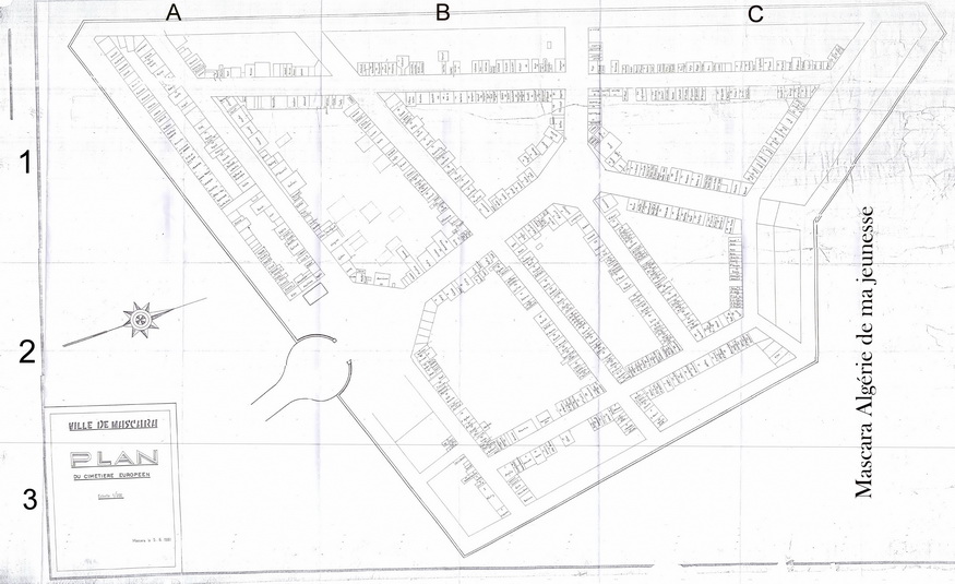 • Accueil • Plan du cimetière catholique • Alentours de Mascara • Plan de Mascara 1994 • Plan de Mascara 1959 • Plan 1935 • Plan de Mascara 1916 •